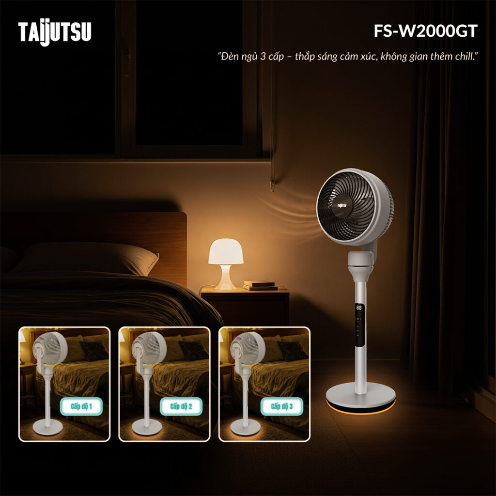 Taijutsu FS-W2000GT được trang bị đèn ngủ 3 cấp độ, giúp người dùng thuận tiện sử dụng ban đem. Đèn ngủ được ứng dụng ánh sáng vàng ấm giúp không gian trở nên ấm áp, thoải mái, thư giãn và dễ dàng đi vào giấc ngủ sâu.